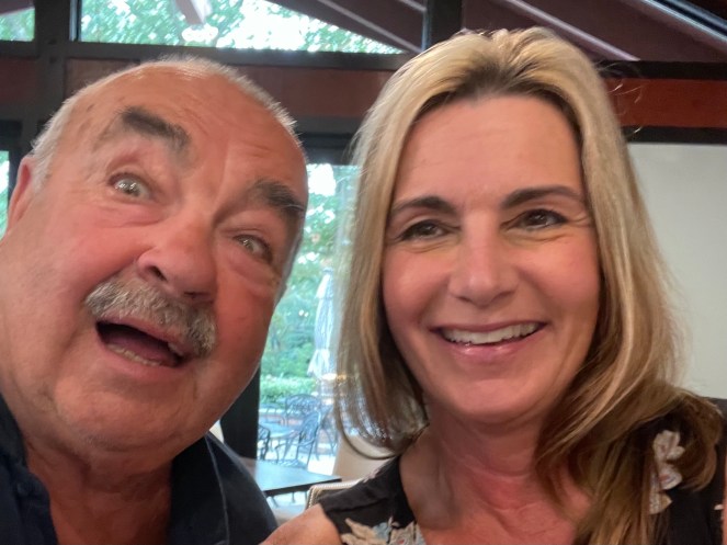 “High Walden”. The cabin is a 100 year old log home with white chinking, a stone fireplace and a welcoming front porch. The house is surrounded by lush gardens, trees, bushes, flowers and about 100 humming birds buzzing around the feeders hanging from the porch. There was a large tent setup with table and chairs outside where we sat and ate. He’d made “Red Devils” for us for lunch. Then, he and John took us to “the bar” which was an adorable Amish shed. Once you opened the doors there was literally a fully stocked bar along with a couch, bar and bar stools. We toured the property and met the chickens and a few other critters along the way, then to the pool. Cool and inviting with sparkling blue water, colorful umbrellas and flamingo floats in the water. It was a perfect little oasis set behind the house.  I was so nervous to meet him, but when I looked into Vic’s eyes the first time, I saw something of myself. For the first time in my life, I saw someone staring back who looked like me! We have the same eyes.  I learned that Vic was an easy going, artistic, charmingly eccentric fellow with a magnetic personality. I was instantly amazed by him and loved listening to his stories. Mostly hilarious and outrageous. He loved to laugh and to have others laughing with him.